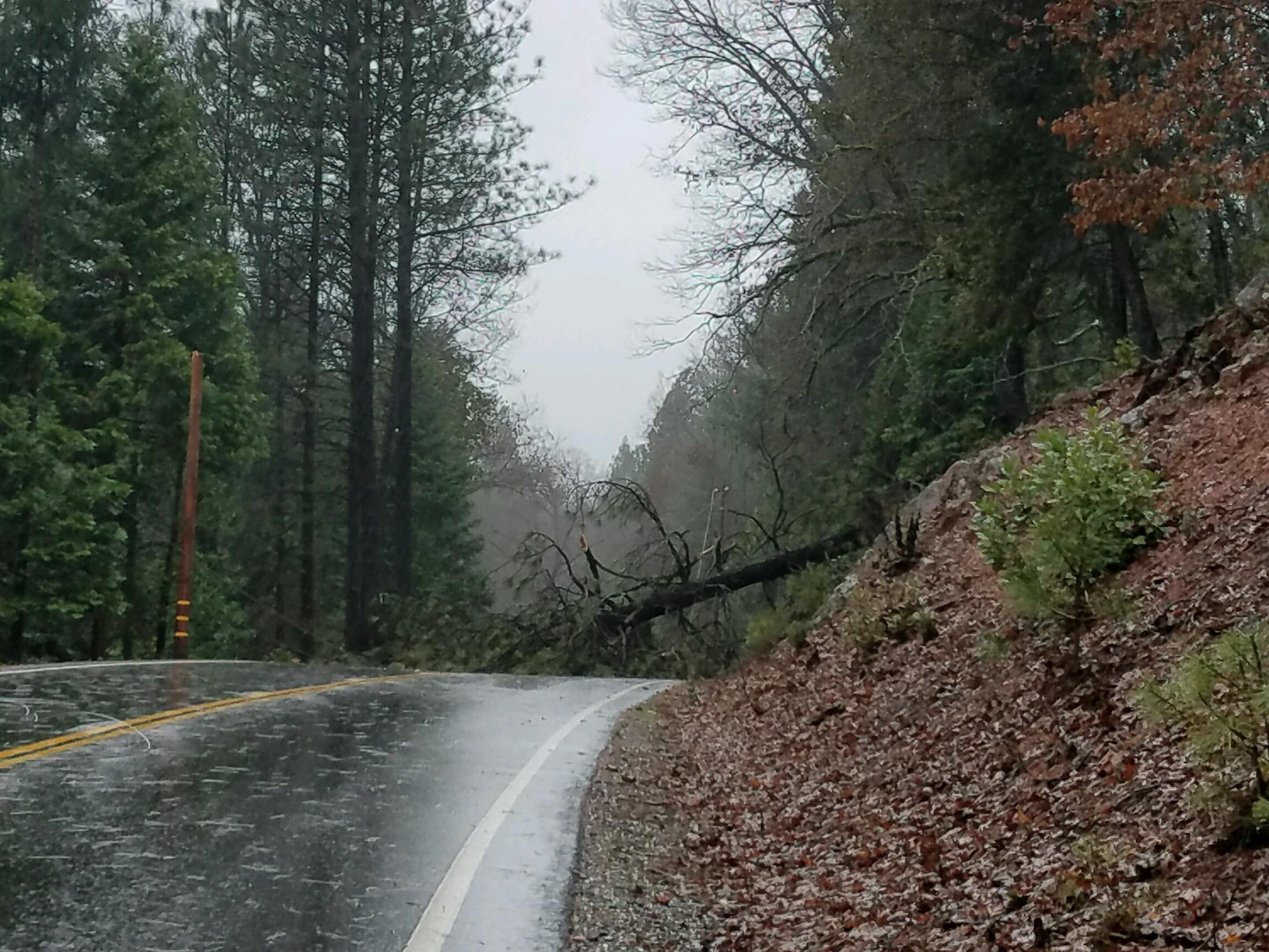 January 3, 2017 at 7:18 AM Tree in the roadway on the 15200 block of Banner Lava Cap in Nevada City. Emergency services en route.