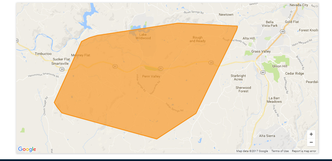 Locations impacted include: Grass Valley, Lincoln, Lake Of The Pines, Lake Wildwood, Colfax, Sheridan, Rough And Ready, Alta Sierra, Beale AFB, North Auburn, Wheatland, Penn Valley, Meadow Vista and Higgins Corner.