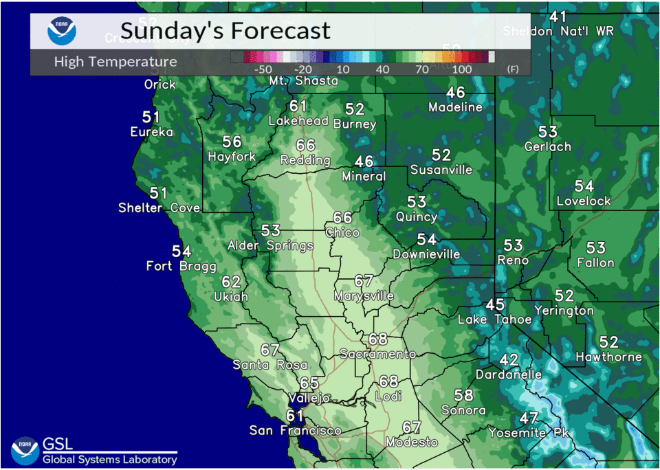 Behind that, breezy northerly winds will develop once again and temperatures will warm into the 70s across the Central Valley by the weekend, around 5-15 degrees above average.