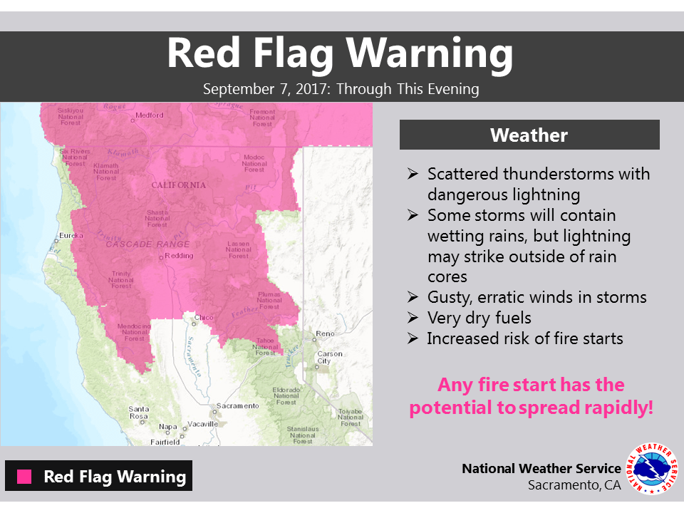 Chance for additional shower and thunderstorm activity continues through this evening. Best chance for thunderstorms will be over higher terrain and in the valley north of I-80. Residents, please remember that fuels are very dry after the heat from June through now. Any lightning has the potential to cause fire starts in our region and a Red Flag Warning is in effect. Watch for smoke and have a plan in case you need to evacuate quickly.