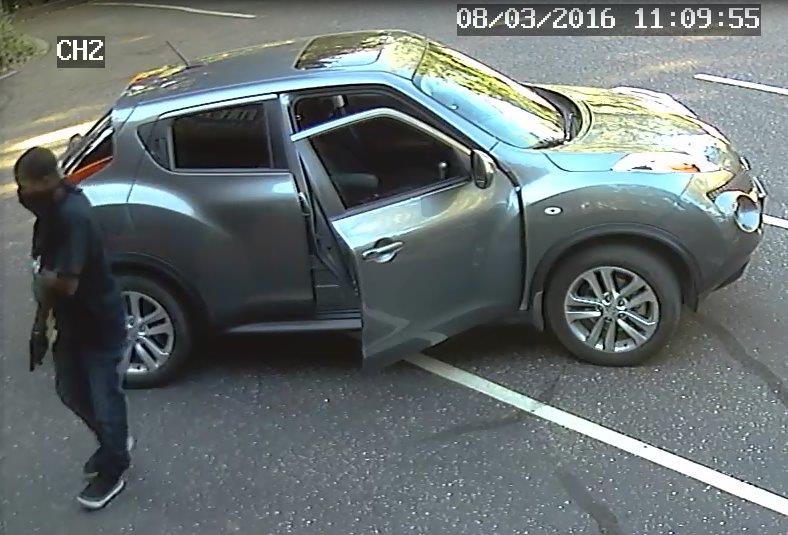 The suspects spent an abbreviated amount of time in the store and left in an unknown direction. The suspects were driving a newer, gunmetal grey, Nissan “Juke” with paper plates. Attached are four photographs of the suspects and vehicle.