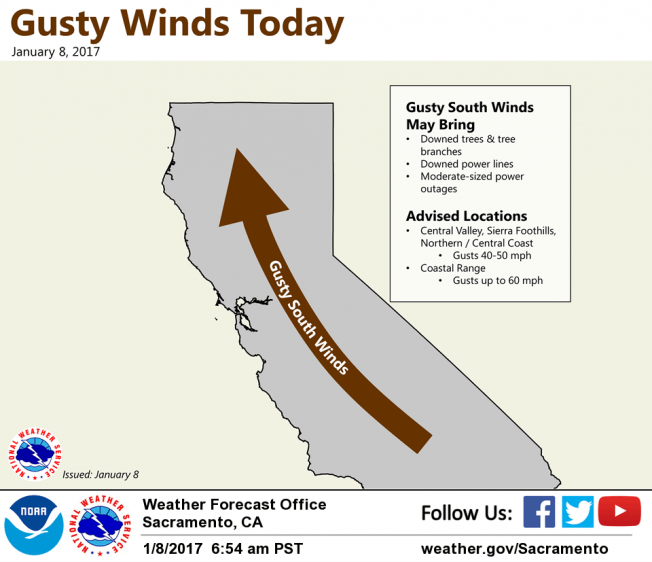 Precipitation forecasts remain on track: with 2 to 6 inches of rain expected across the Valley, and 7 to 15 inches possible over the Sierra. Wind gusts should also increase to 40 to 50 mph during the day today, with moderate-sized power outages possible.