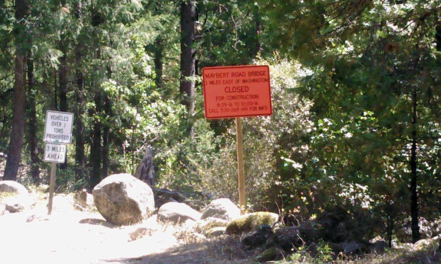 WASHINGTON, Calif. August 26, 2016 – Nevada County is expected to begin construction in the Town of Washington on the Maybert Road Bridge at Canyon Creek beginning on August 29, 2016. The project is scheduled for completion on or before December 20, 2016.