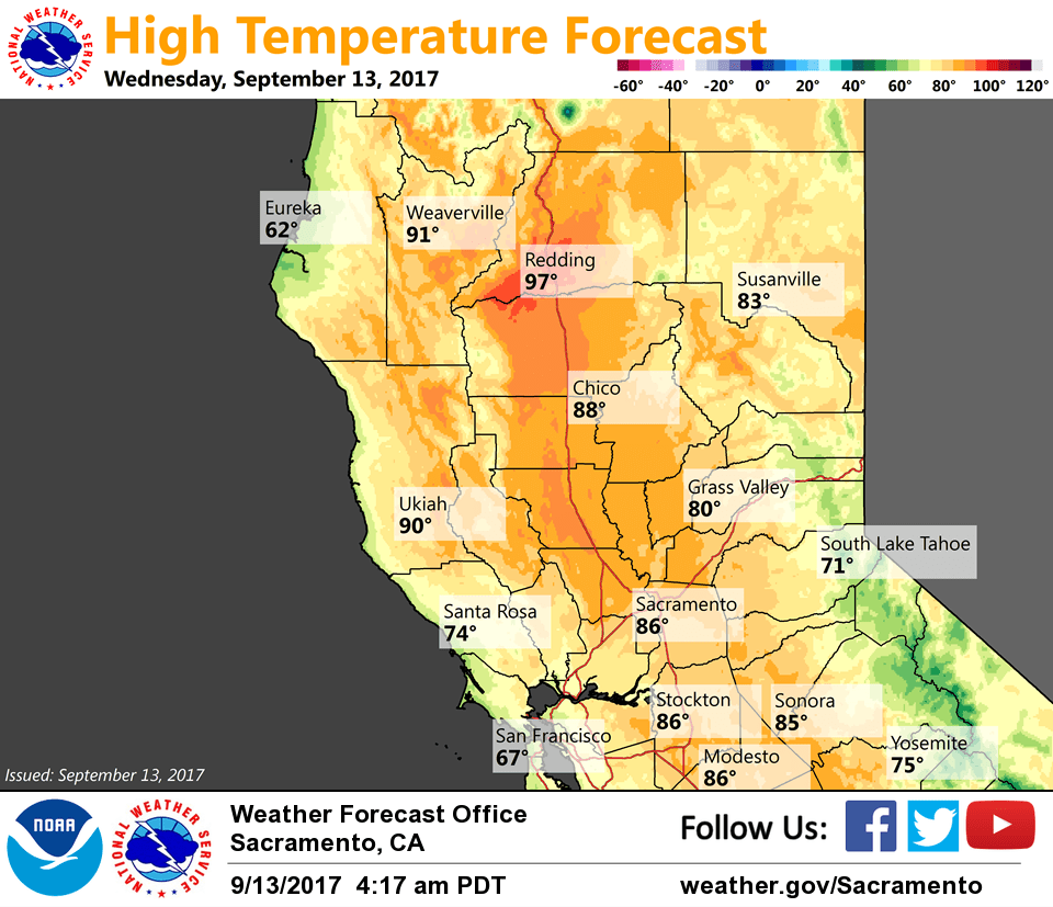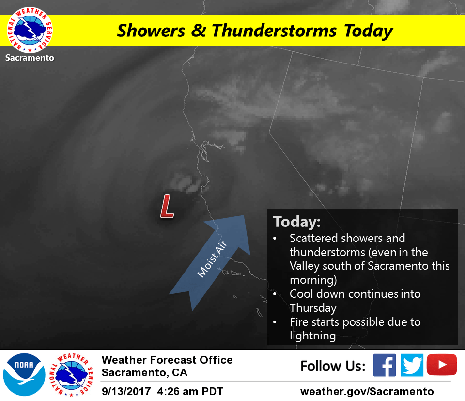 September 13, 2017 – Showers and thunderstorms into mid-week. Cool down begins today and continues into Thursday.