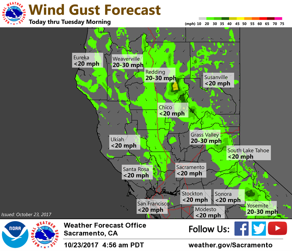 October 23, 2017 – Dry and warm weather this week. Locally breezy northerly winds into Tuesday.
